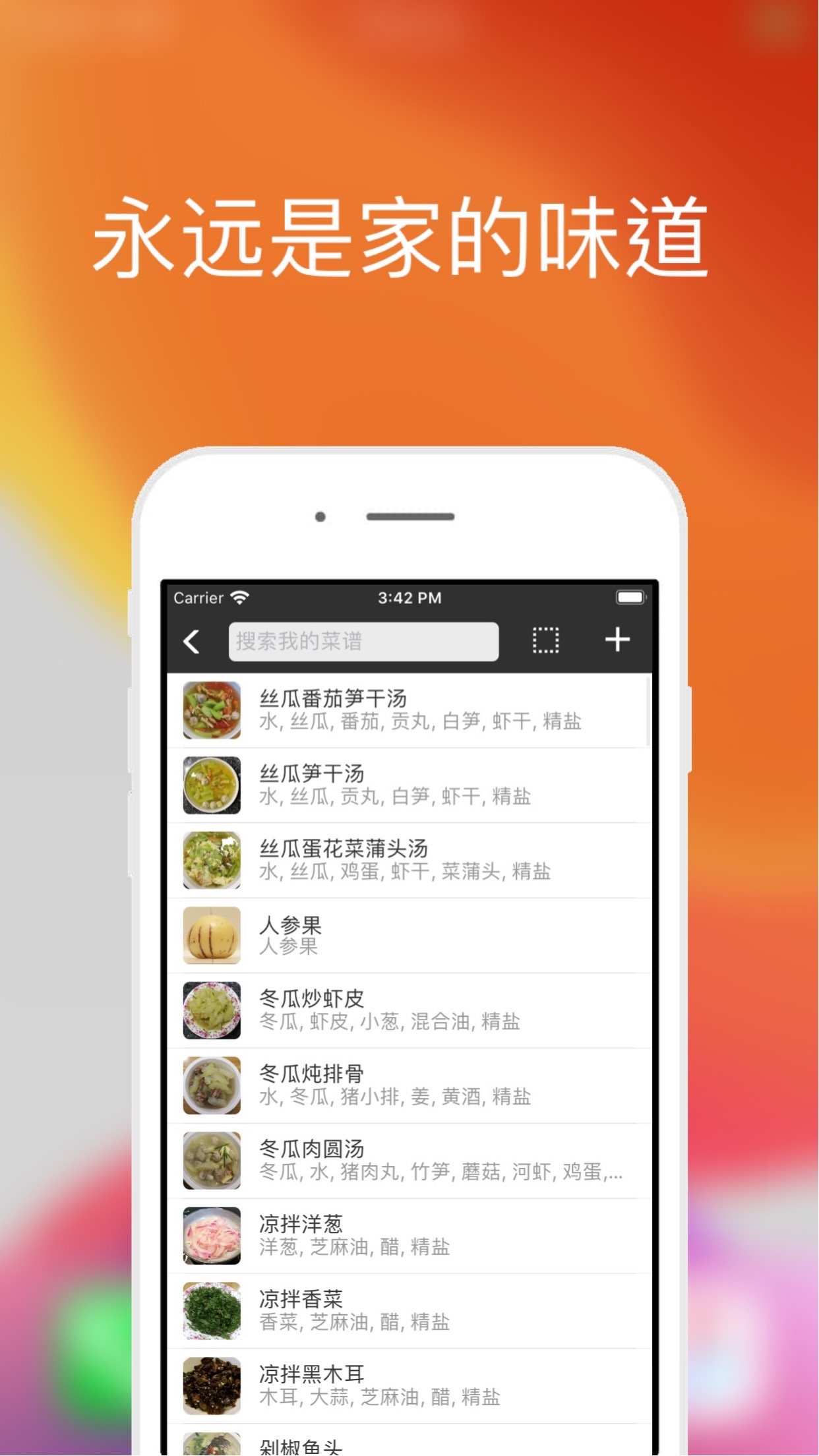 • 永远是家的味道:可以自建菜谱,也可以收藏其他用户分享的菜谱并加以调整。