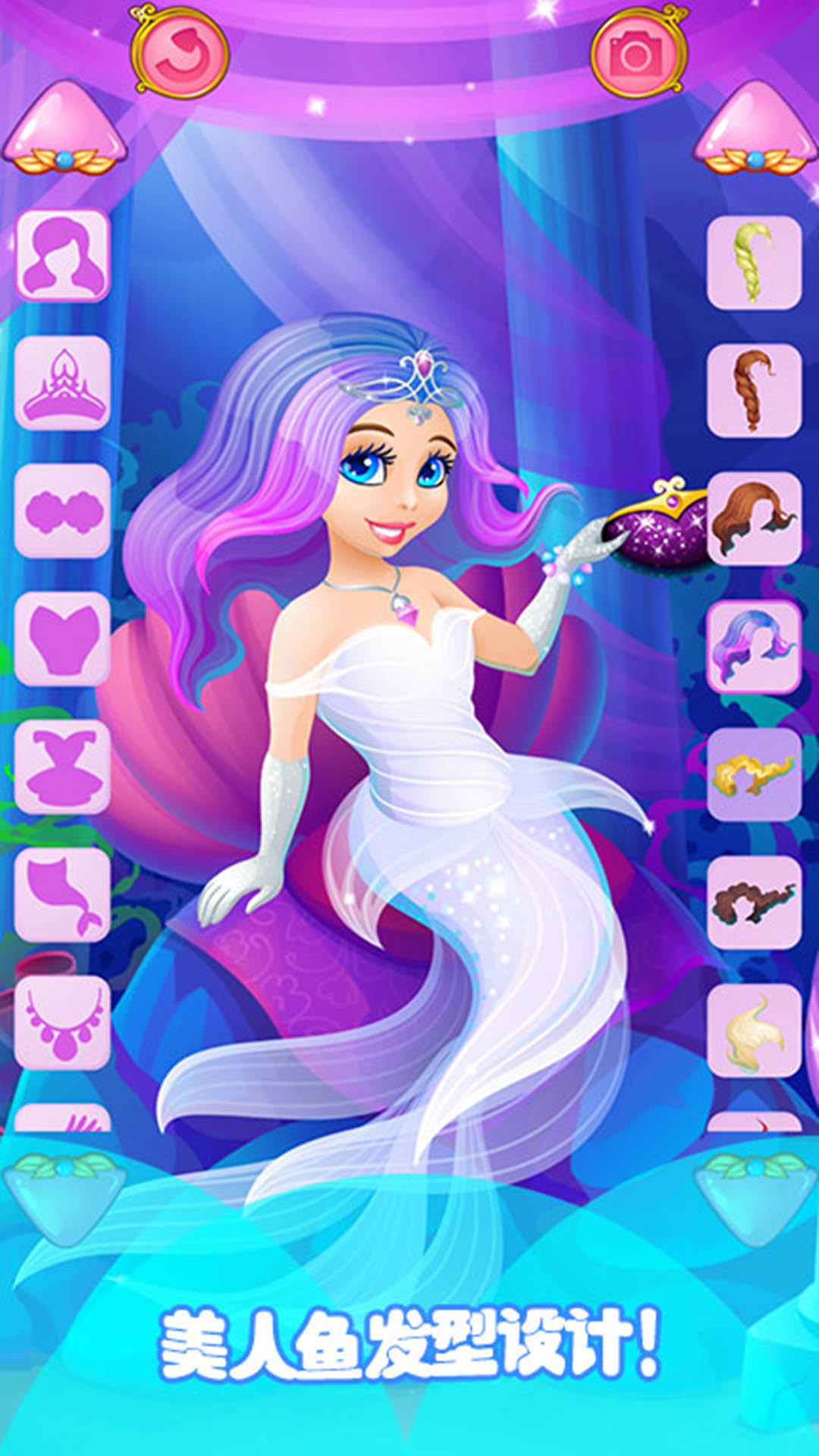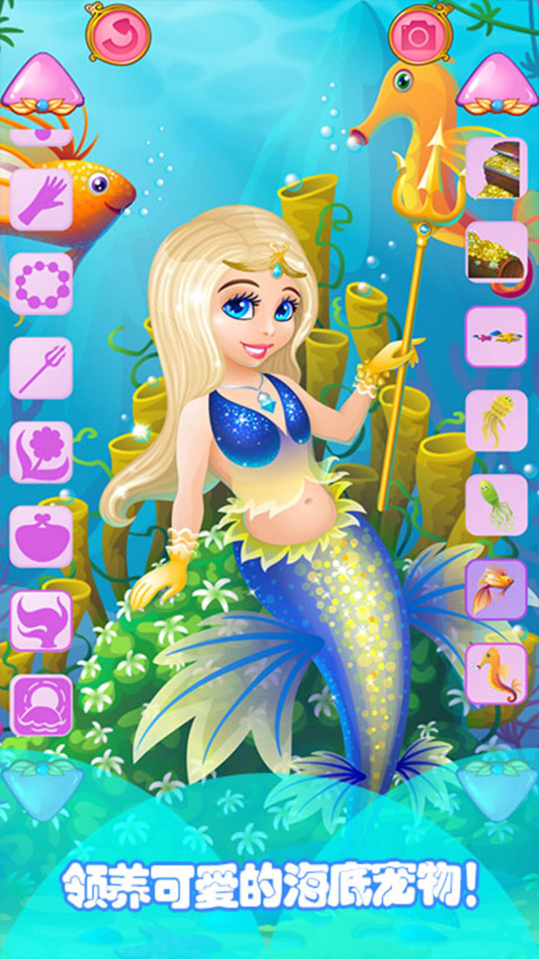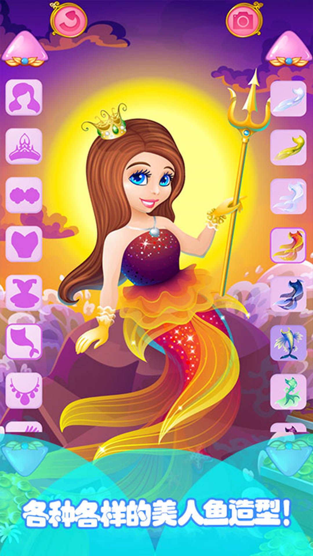 选择4种颜色鲜艳的水下背景,从4位鱼美人中选择一位给她穿衣打扮,有很多发型和发色可供选择!有很多不同的种类可供选择:手镯、珠宝、三叉戟、花朵、手包甚至可爱的水下魔法宠物。让你的美人鱼成为水下世界的小公主,成为所有公主和魔法精灵中美丽的那个!