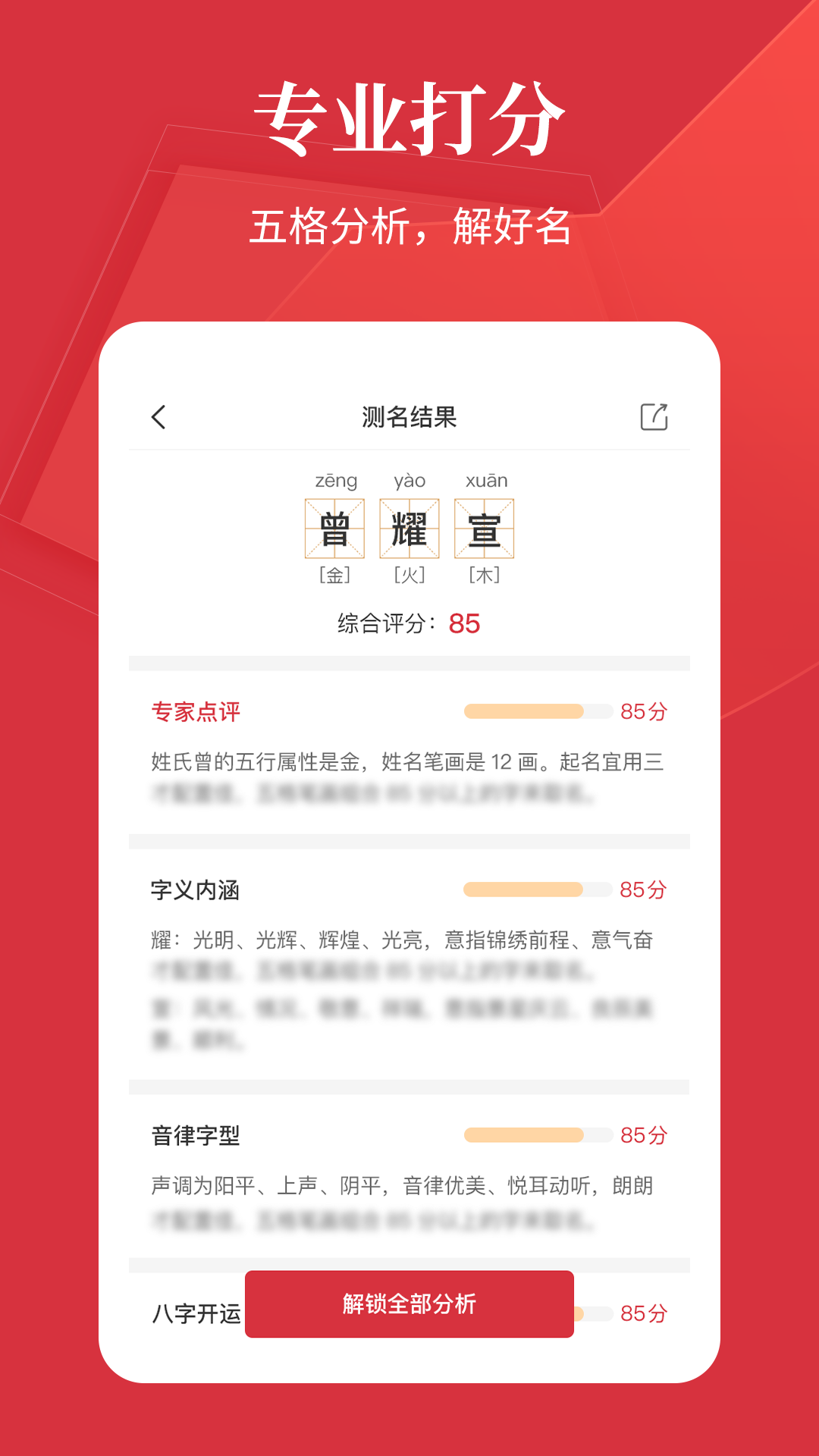 《测名》解名能运用五行三才,周易八卦的理论给您的名字打分,姓名打分,全方位解析出名字的五行八字,命格命理,让您读懂名字背后的寓意