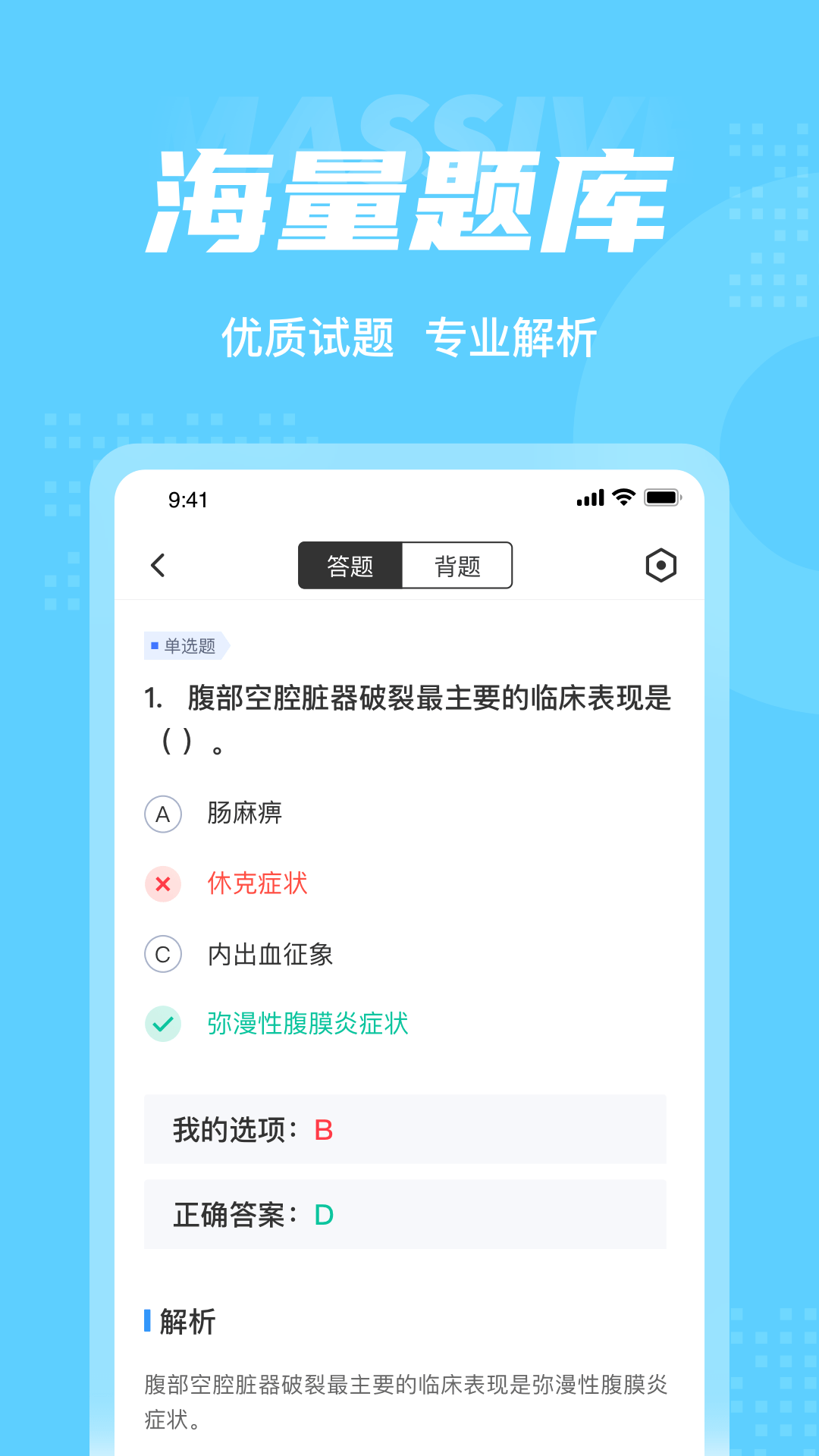 主管护士中级题库内含考点练习,全国通用卷以及地区卷模拟练习,以及按照固定考试比重的随机式的抽题的真题考场,成绩单实时记录考试数据,一点一滴的反馈考生近期学习状态以及自我正确率的提升,大大的给予考生通过考试的信心。