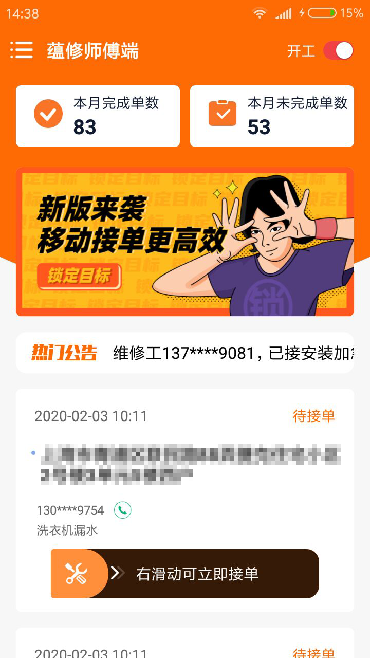 蕴修师傅端APP是一款为家居维修师傅量身打造的一款接单神器。面向所有可以提供家居服务的师傅。只要您擅长配送、搬运、安装、维修服务,就可以来蕴修师傅端接单维修。实时处理订单操作,自由支配时间,订单接到手软。