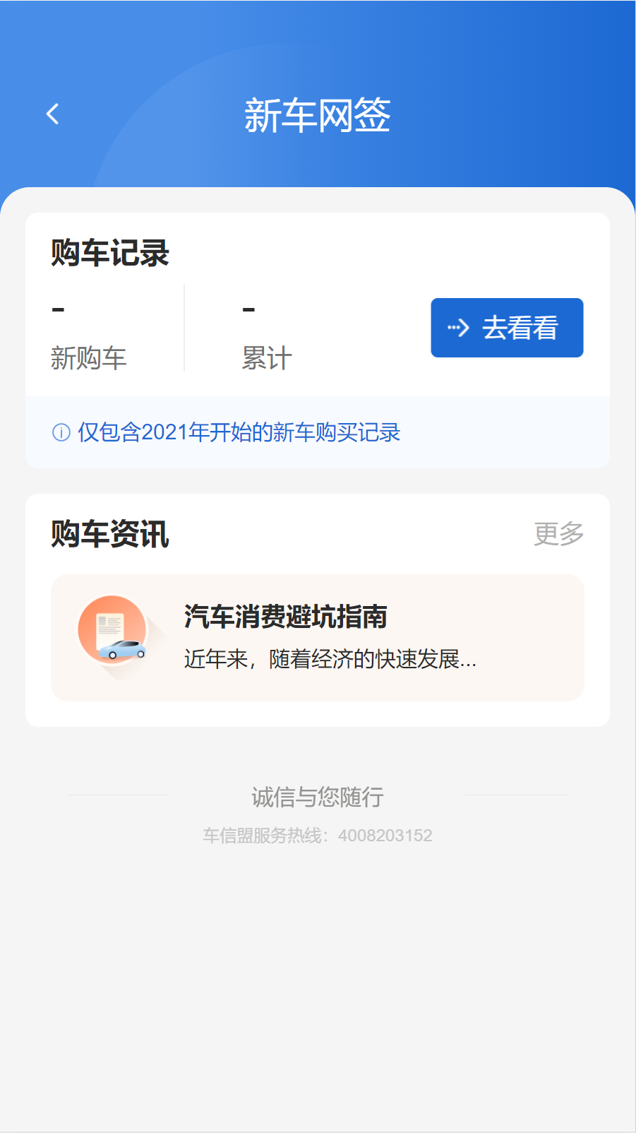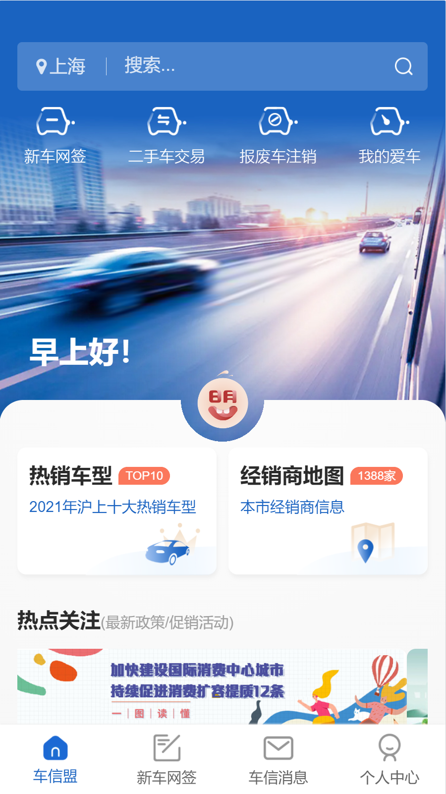 全国首个覆盖汽车全生命周期的O2O信息服务平台,以“融合、透明、便捷”为服务宗旨,以大数据、智能化为技术手段,以车辆信用为依托,服务汽车流通行业内的企业和消费者。【信息服务】车辆信息储存中心,集合车辆从生产、销售、保养、理赔、维修、交易到报废拆解等全生命周期的信息,服务于企业和消费者。【社会服务】车辆服务中心,联合流通行业诚信商家为您提供更多的线上社会化服务,一个APP服务您买车、用车、卖车的所有需要。【公共服务】车辆办事中心,以“数据多跑路、群众少跑路”为服务宗旨,提供更多的线上预约、线上申请、线上办事等车辆公共服务。