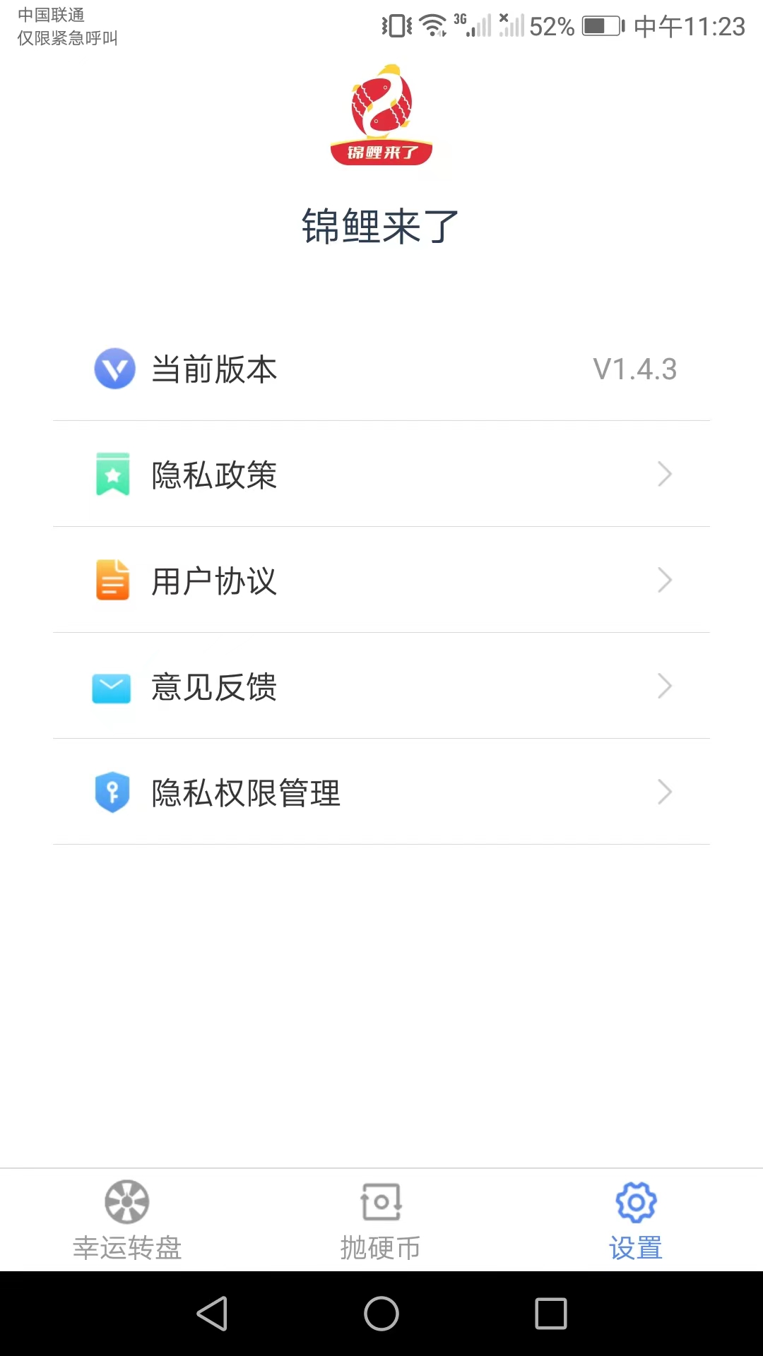 锦鲤来了是一款可用于生成数字、选择恐惧症、聚会游戏等各种场合的软件。当你犹豫不决的时候,让运气来帮你做选择!【转盘】 随机生成数字,看看谁是玩家。【抛硬币】刺激的正反面让用户猜猜看。